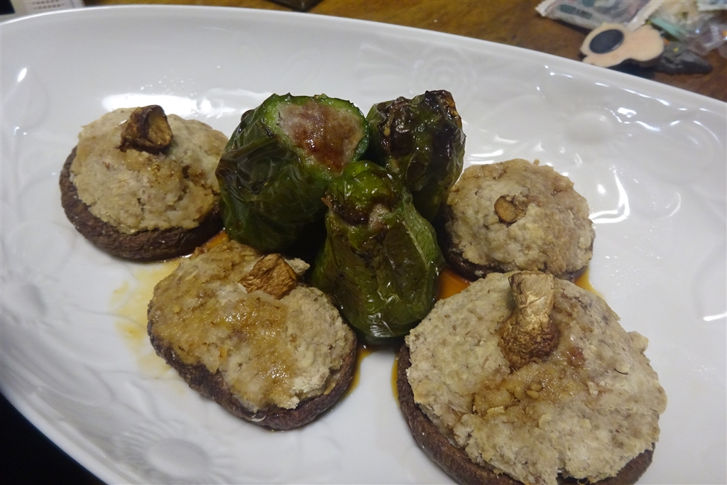 肉詰めピーマンと椎茸!