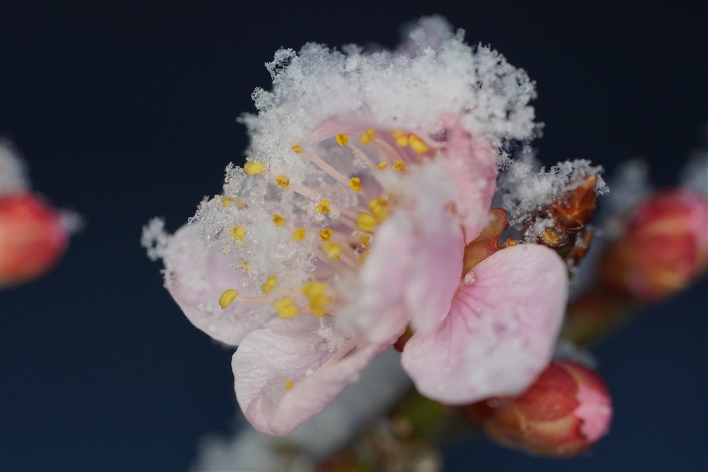 雪が降ってきたので、慌てて撮影しましたが、雪の結晶は崩れていました