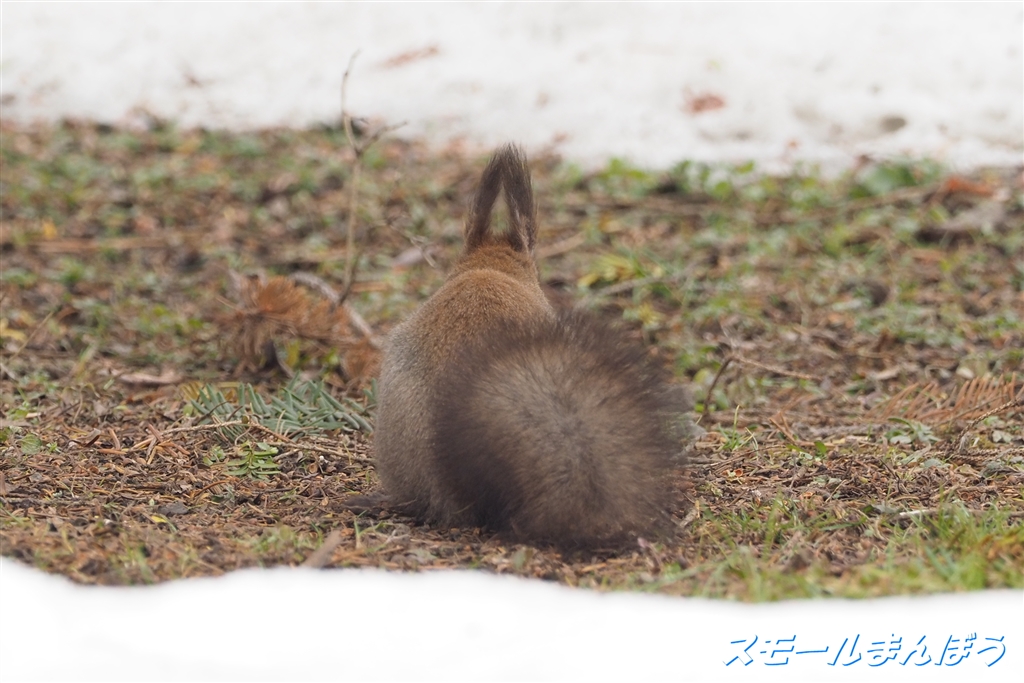 後ろ姿のエゾリス(尾を左右に振ってました)