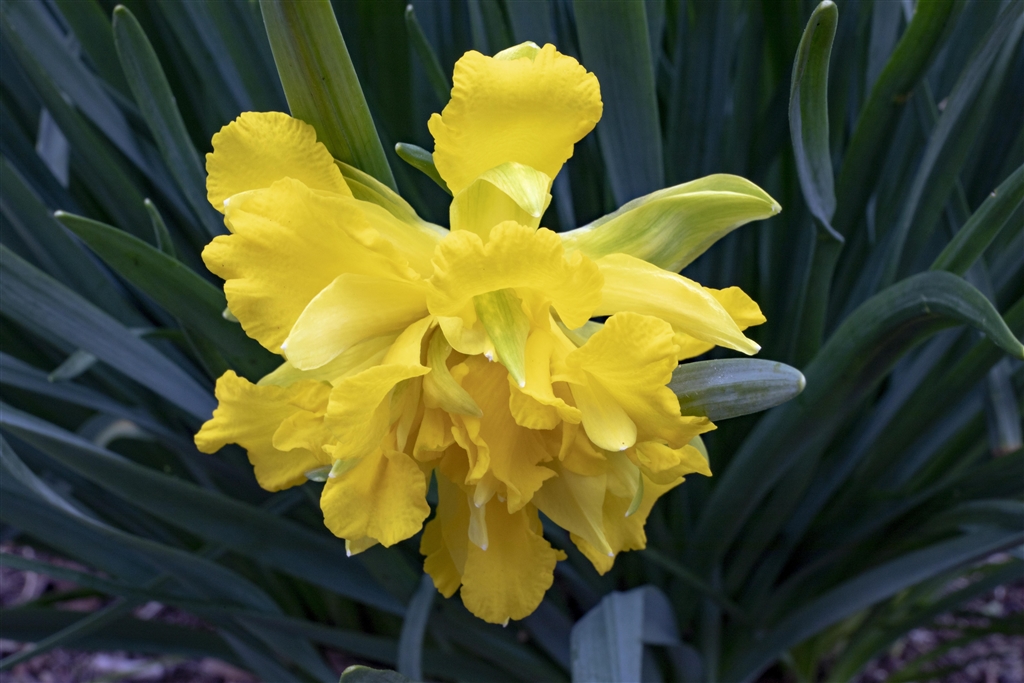 水仙ですが、一輪だけ変。たぶん突然変異かも。