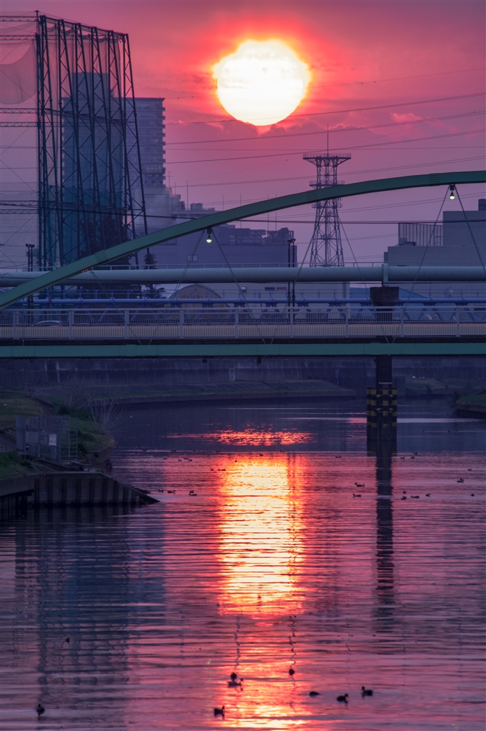 東西に流れる川 日の出が楽しみな季節です