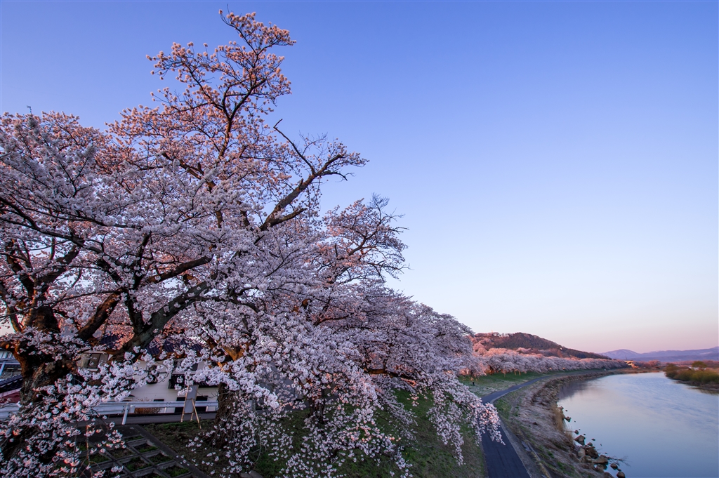 日の出直後の柴田町一目千本桜