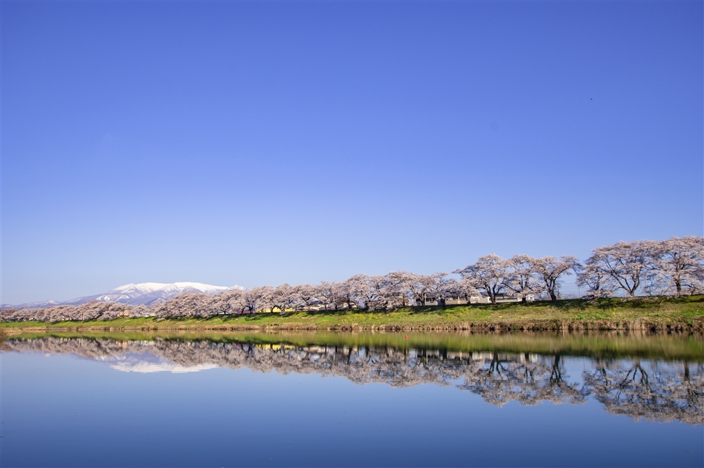 蔵王を映す白石川