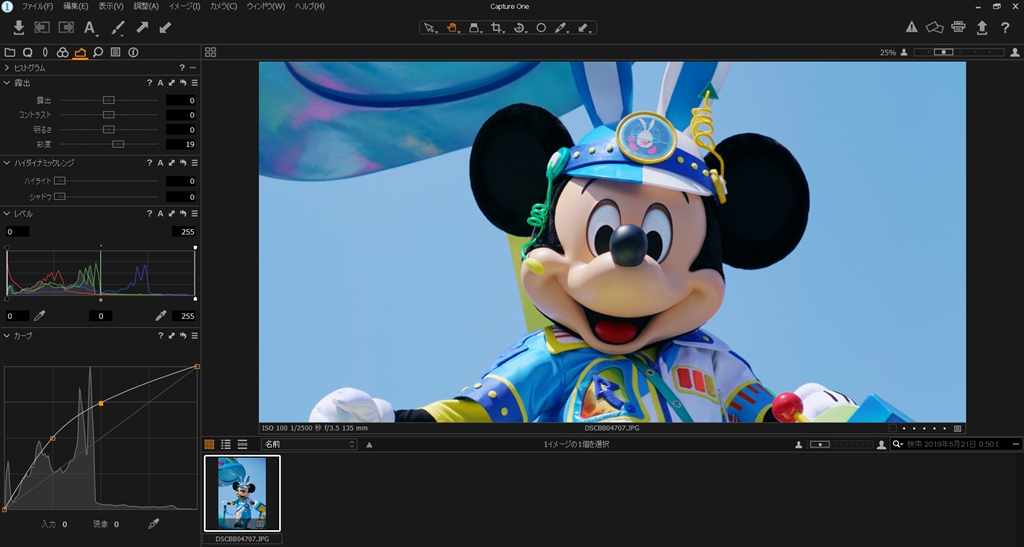 トーンカーブと彩度だけを変更した様子