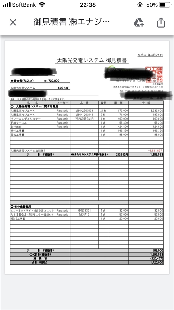 太陽光発電 パナソニックすべて よしかわくんさんのクチコミ掲示板画像1/1