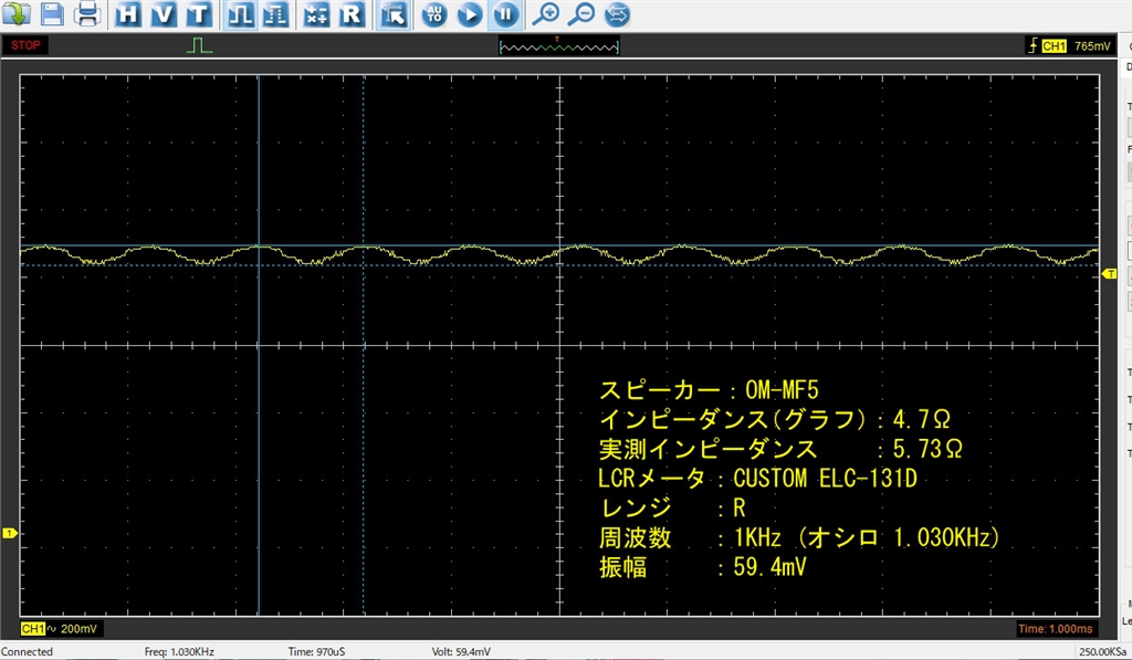 1KHz Rレンジ実測時 オシロ波形