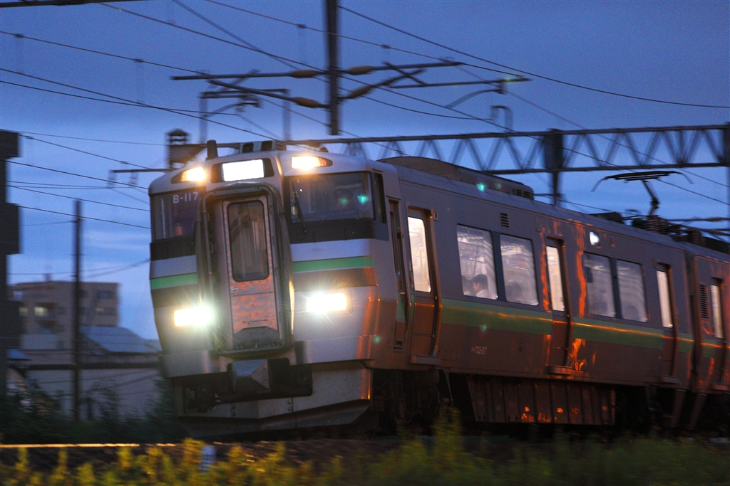 まだ明るいです。733系電車