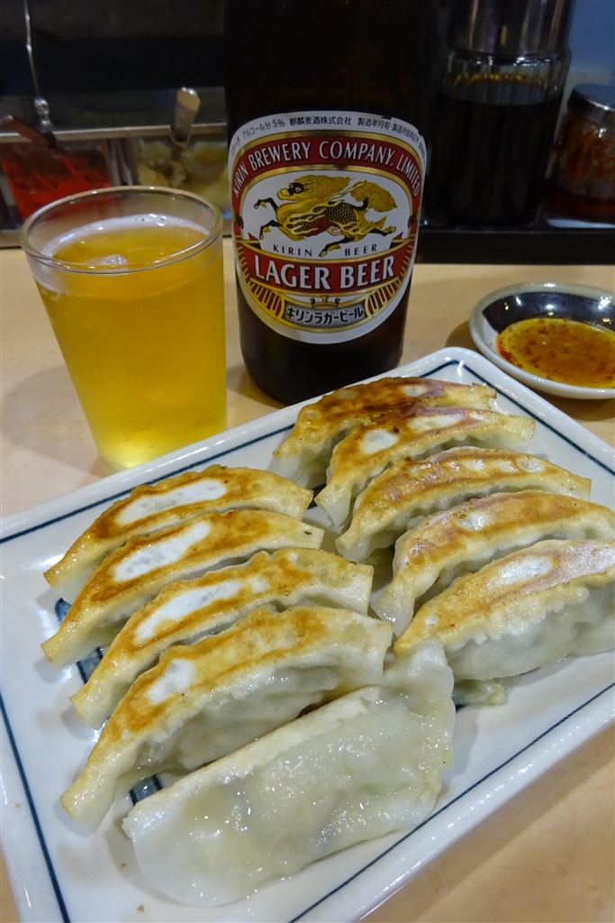20190416 晩飯! ビールにサービス餃子!