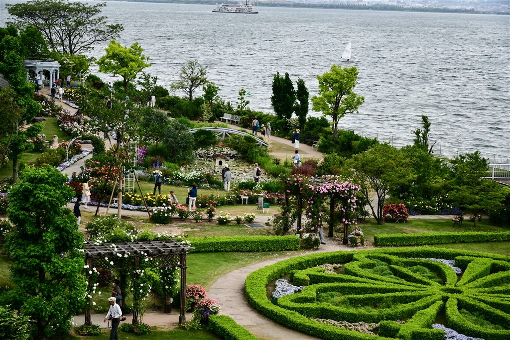 上から見たイングリッシュガーデンです、薔薇のお花も目立つ様になって来ました。