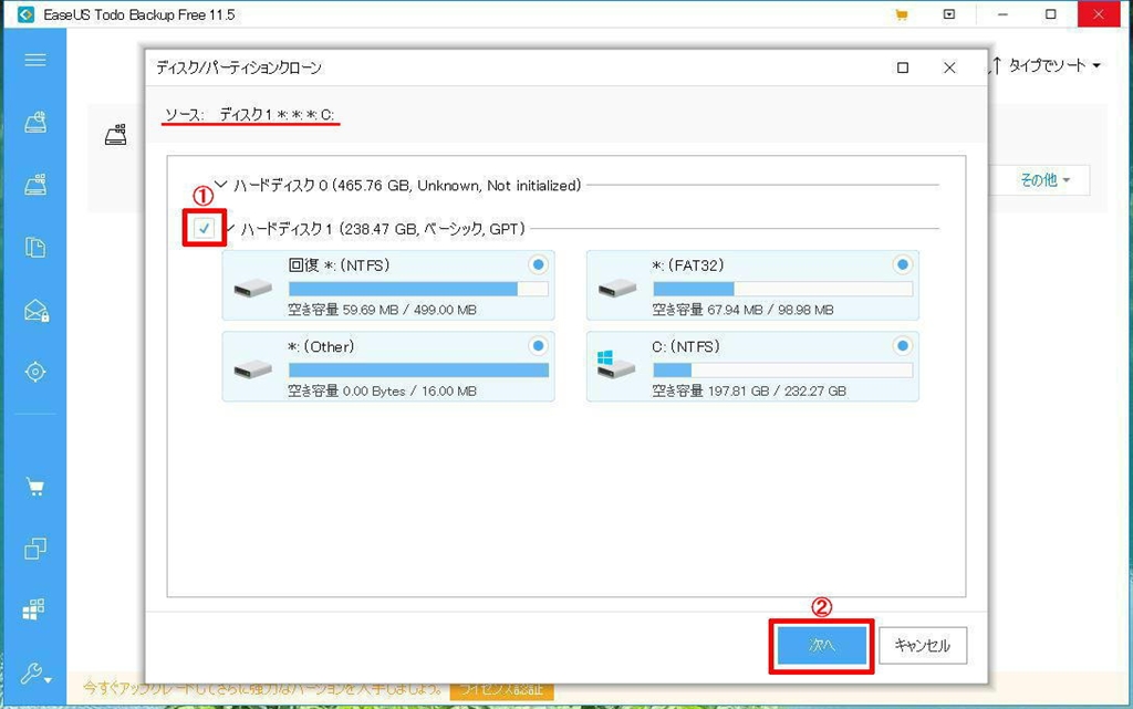 ターゲットディスクの選択