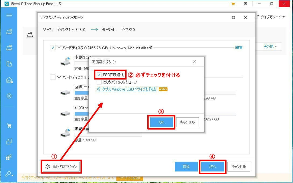 SSDに最適化にチェックを付ける