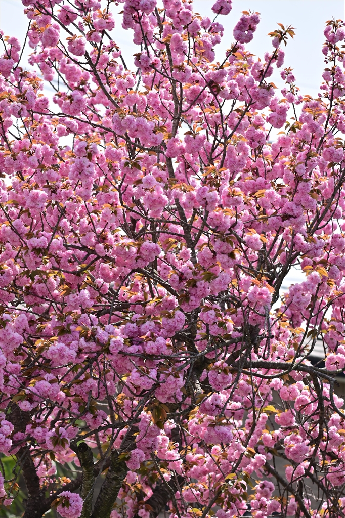 線路際の八重桜
