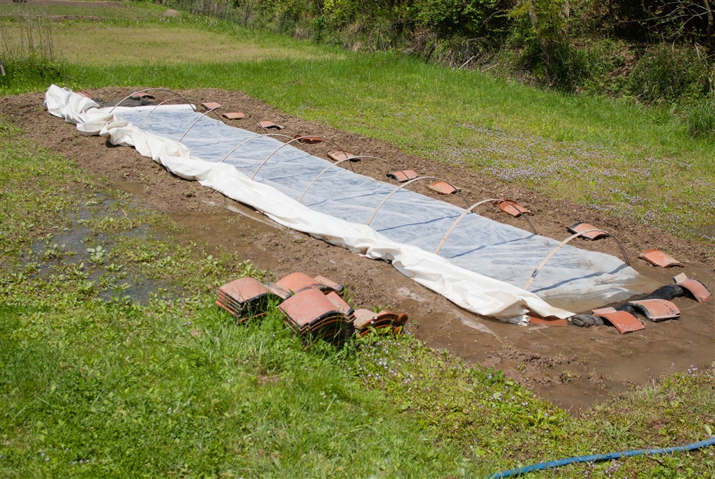 コシヒカリ苗床水やり後