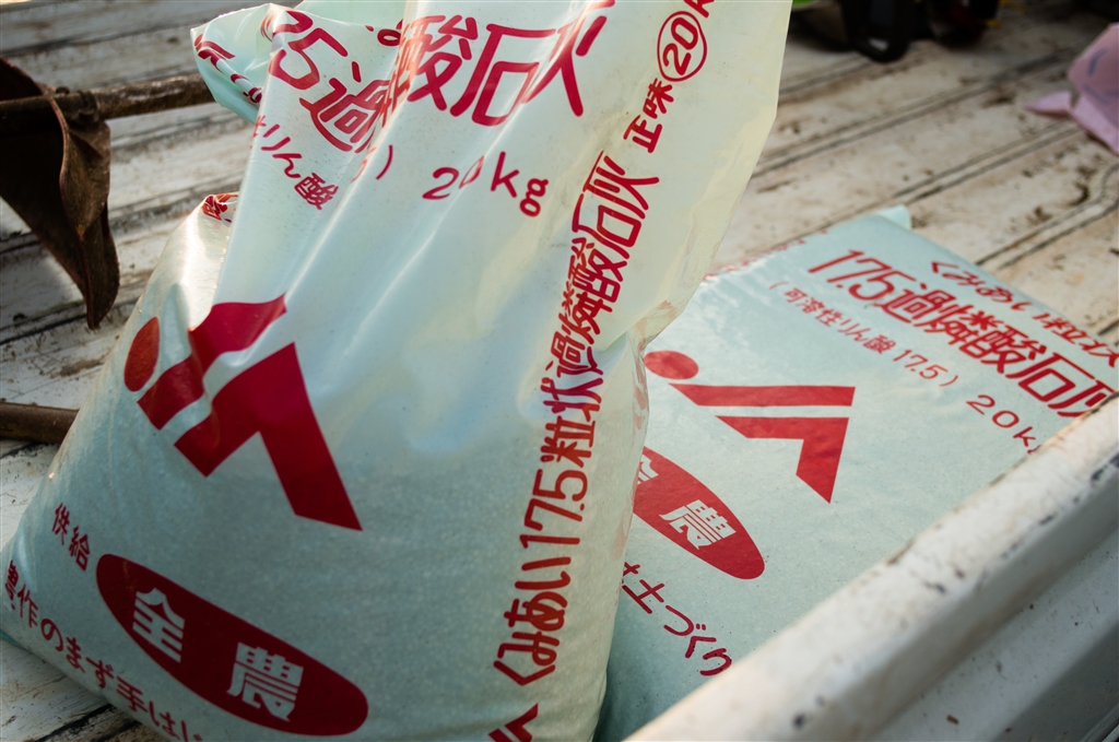 過石(肥料)を2袋(18a分+α)施肥、暑かった。