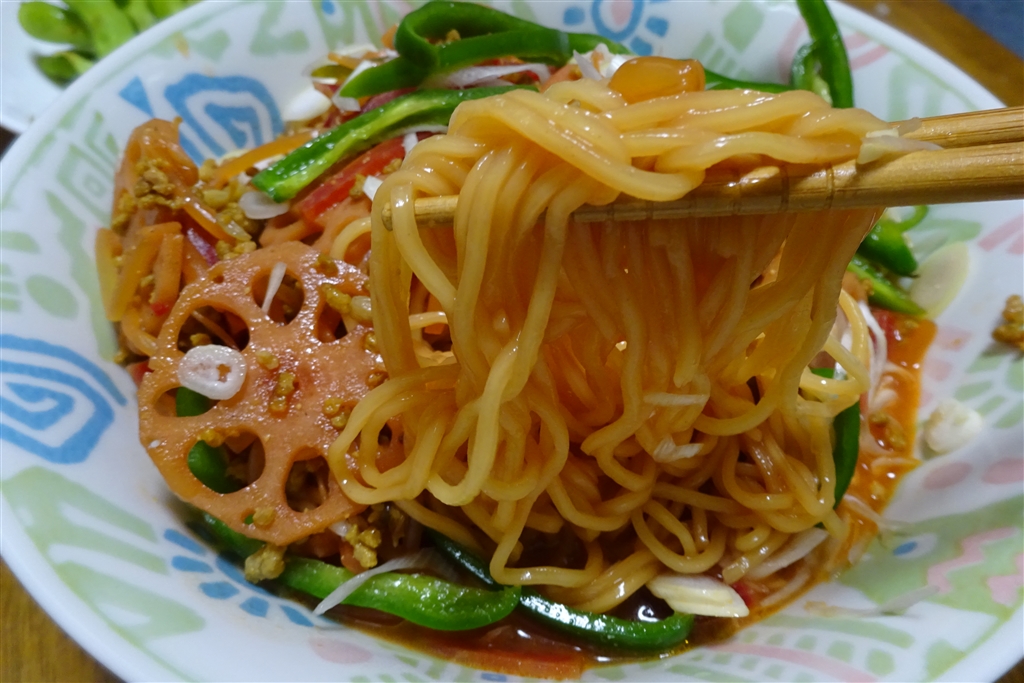 麺まで赤く染まった.......。
