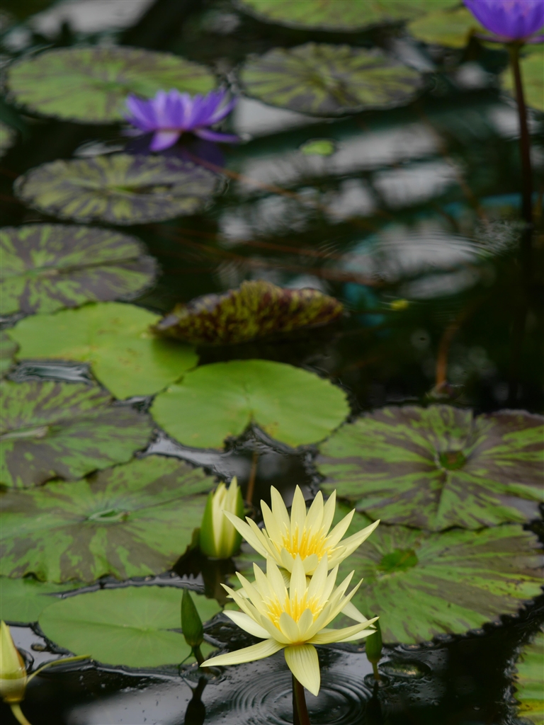 温室に咲く熱帯スイレン。