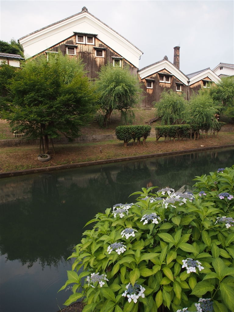 紫陽花と運河に酒蔵。