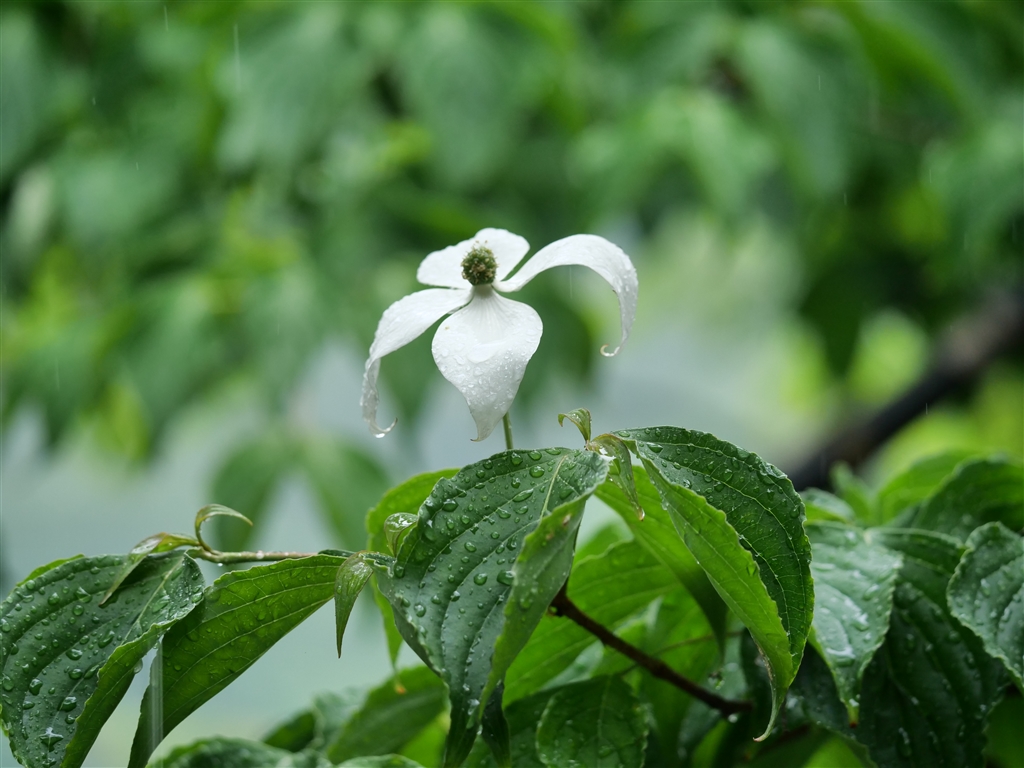 雨に打たれるヤマボウシ
