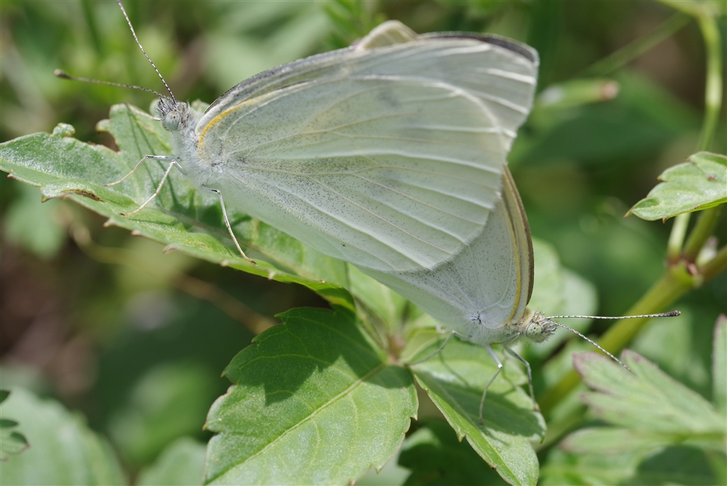 シロチョウの交尾 交尾器が見えないので、どちらが雌?