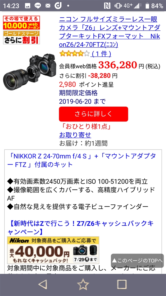 『Nikonさん『Z 6 24-70 レンズキット』安いのかな??』 デジタルカメラすべて Tio Platoさんのクチコミ掲示板画像3/3