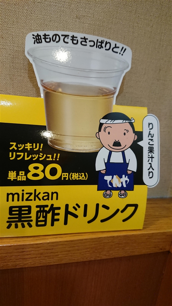 黒酢ドリンク りんご果汁入りも注文したものの、( ^ω^ ) 不味かった。