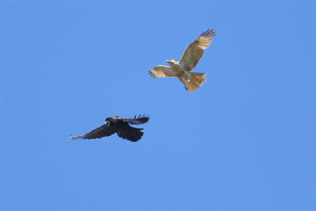 難なくかわされ、高度が逆転。カラス悪い予感。