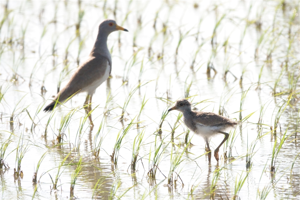 ケリの親子。人間が近づけば親鳥は大騒ぎですが、距離がビミョーなので膠着状態です。