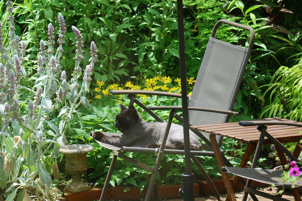 近所の猫のくつろぎ場。窓ガラス越しに(トリミング)EF-M18-150重宝してます