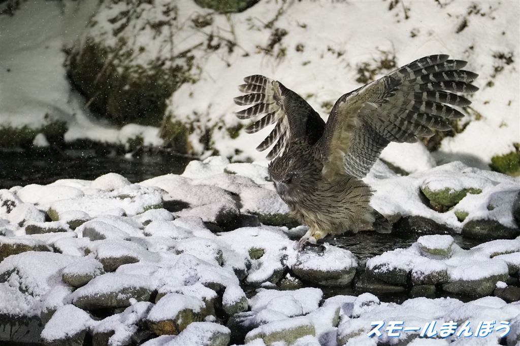 雪降る中に登場。そしてお魚GET