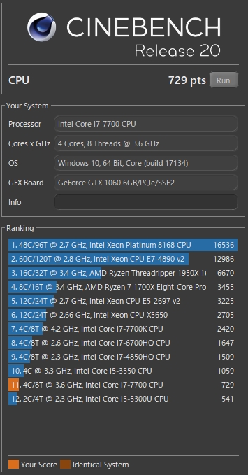 『CINEBENCH結果』 CPUすべて LovelyJPさんのクチコミ掲示板画像2/2