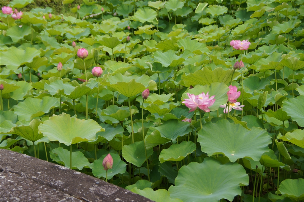 放生池より蓮を撮ります。