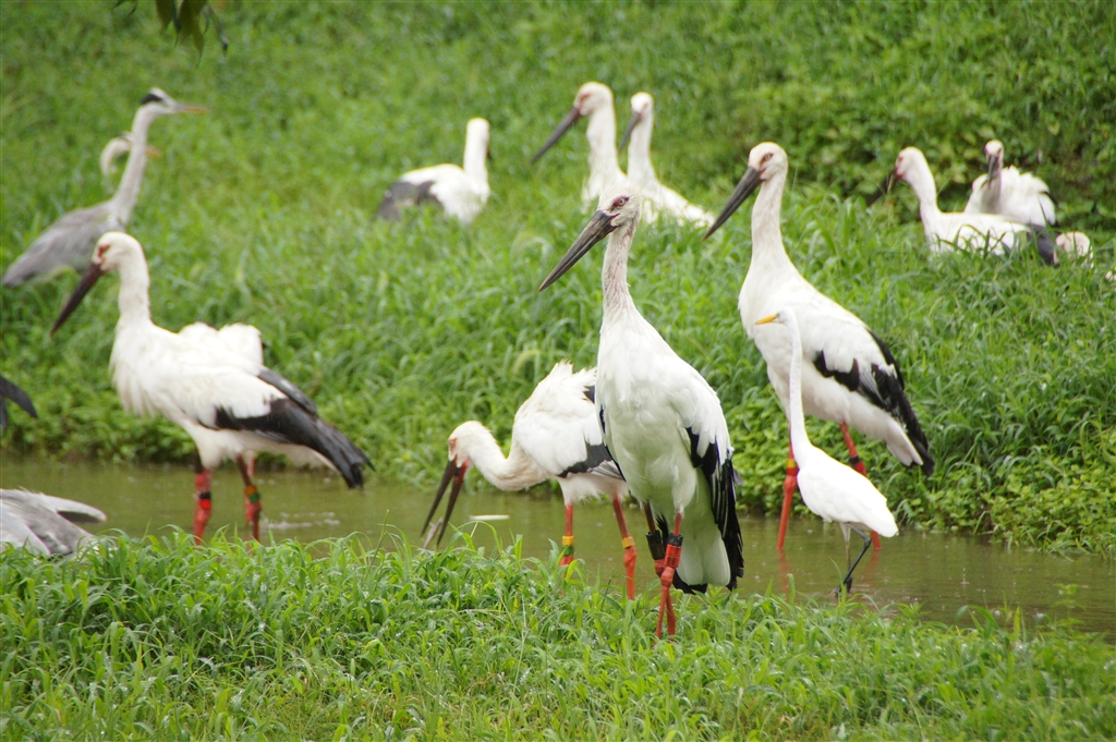エサの時間で飼育されているコウノトリの他、野生のなど寄って来ています。
