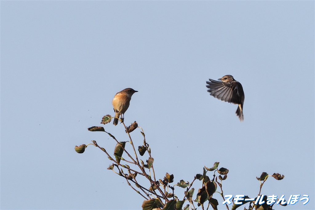 横向きのノビタキを狙っていたら・・・右からノビさんが!