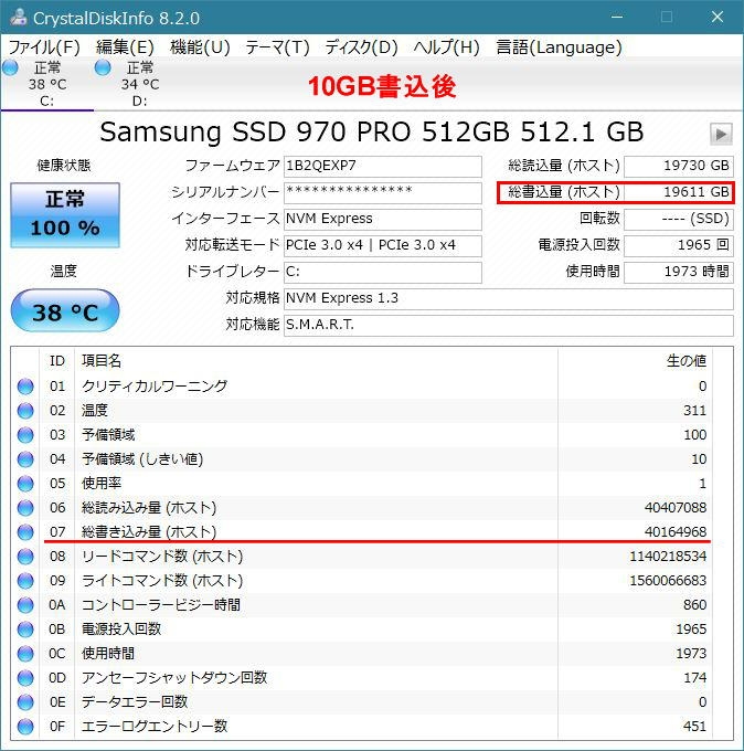 10GB書込後