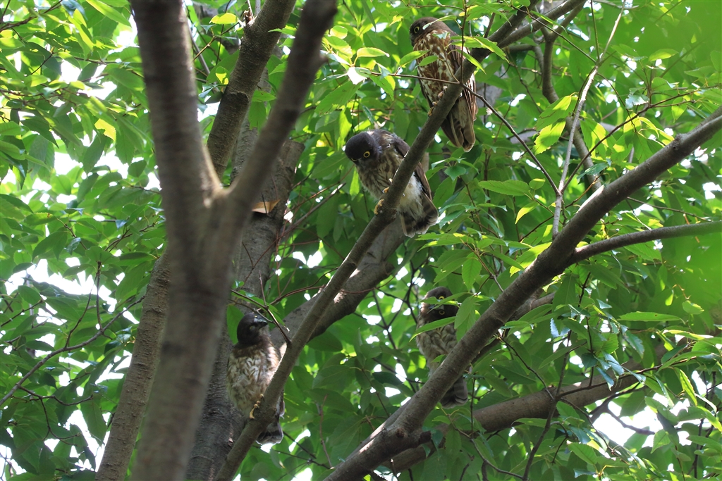 番の親鳥(右上)と幼鳥4羽の6羽家族でした