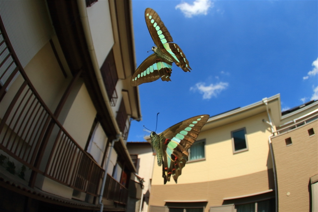 おまけ(帰りに自宅近くでアオスジアゲハがランデブーしていました)