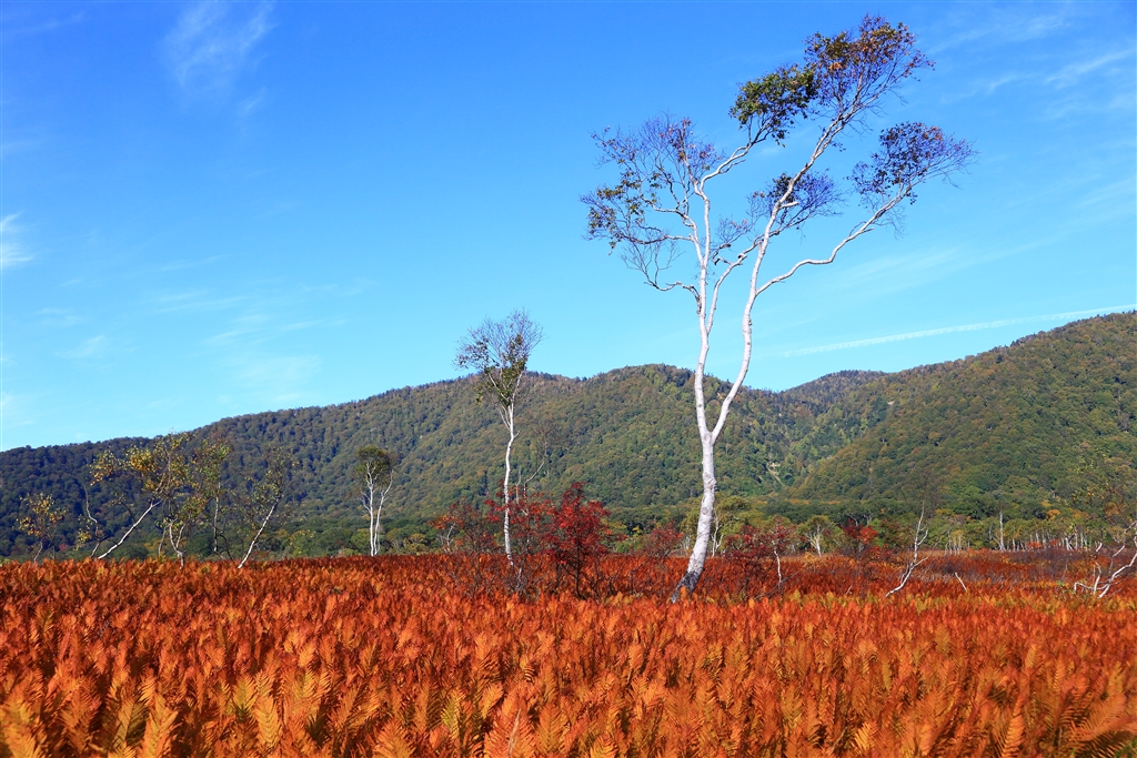 場所によってシダ植物(ヤマドリゼンマイ)が燃えるような色を演出する