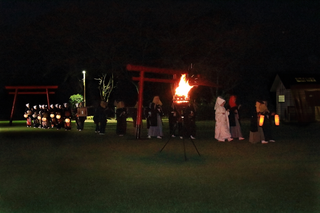 かがり火が焚かれた会場に到着(それでも暗い)
