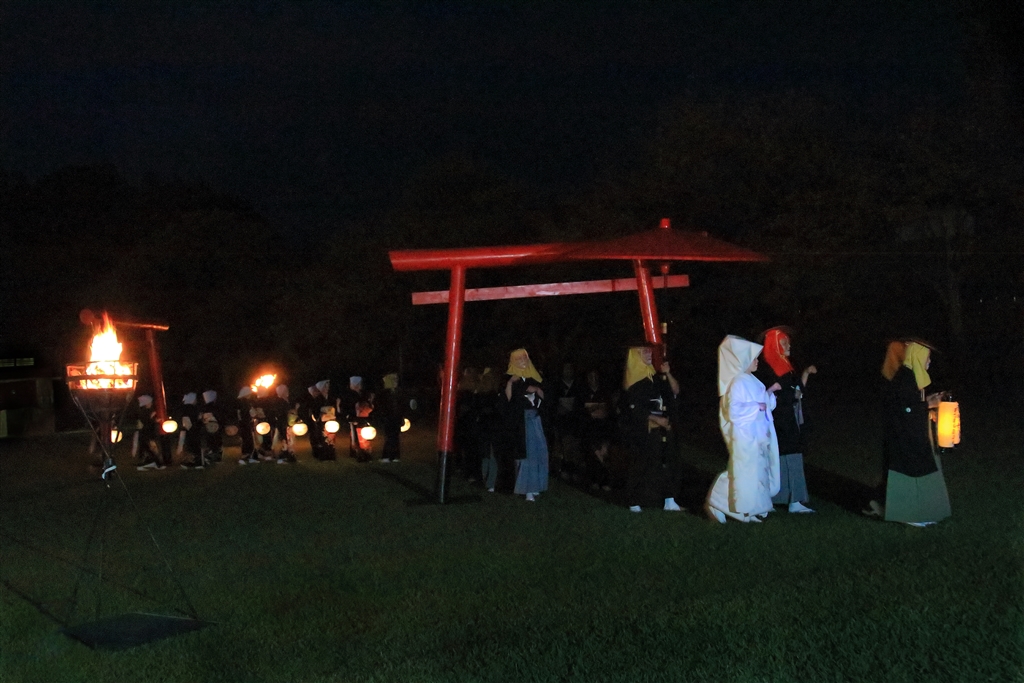 狐の嫁入りのための輿入れ行列