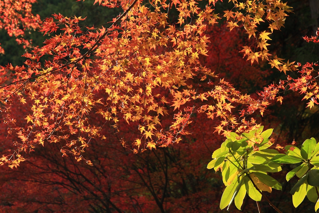 日陰と日向の紅葉