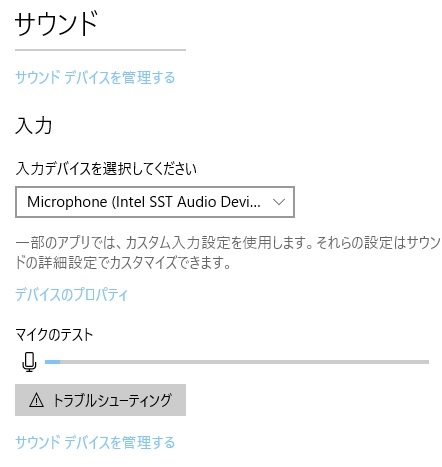 マイクが見えていた時の入力デバイス名