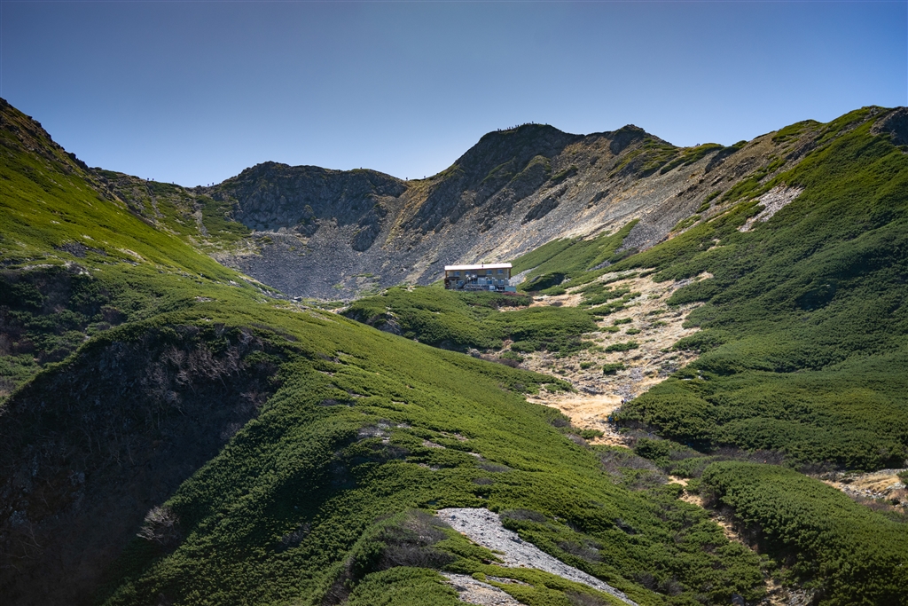 カール底から仙丈ケ岳を見上げる