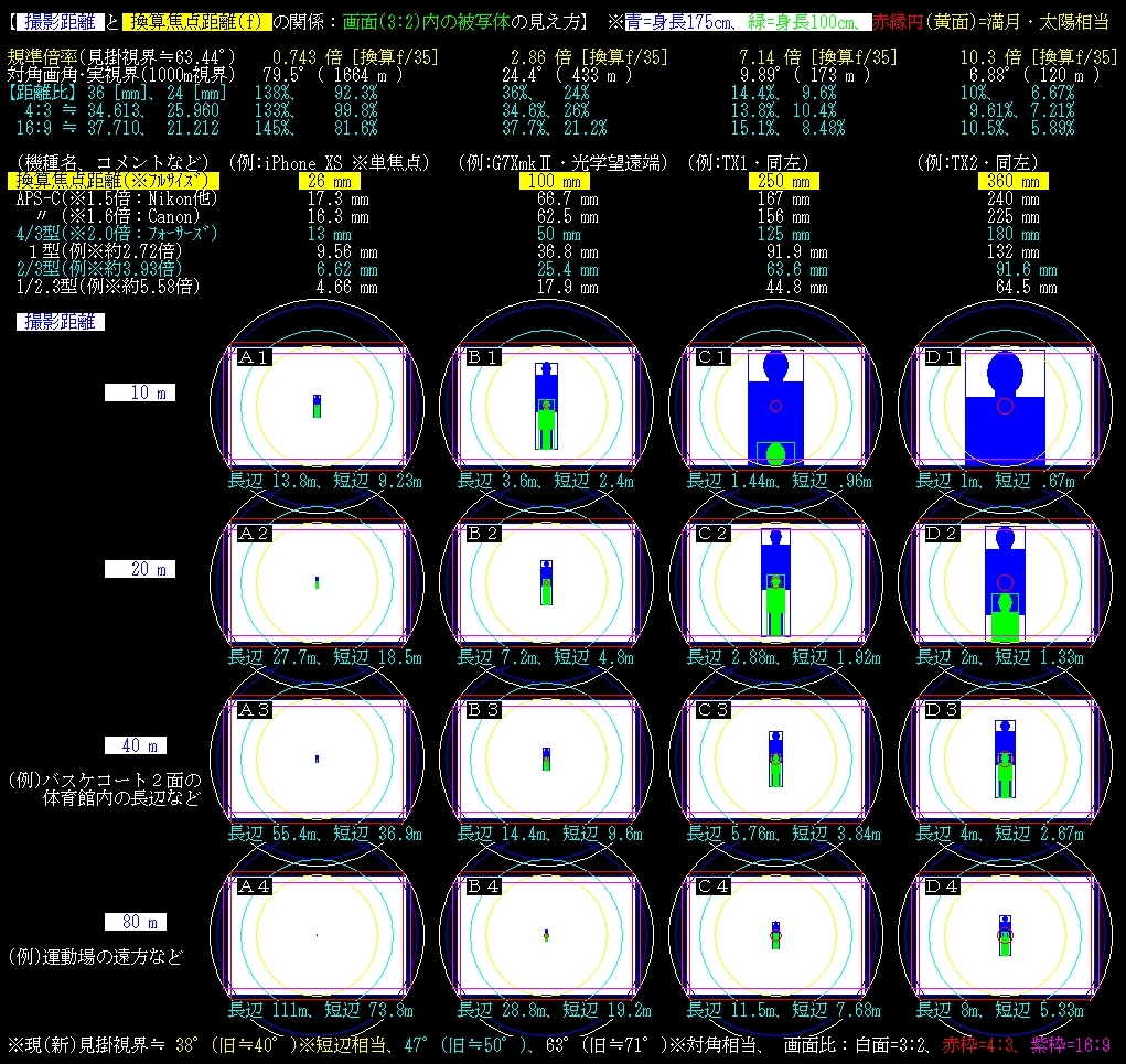 撮影距離10~80m、換算f=26mm、100~360mm