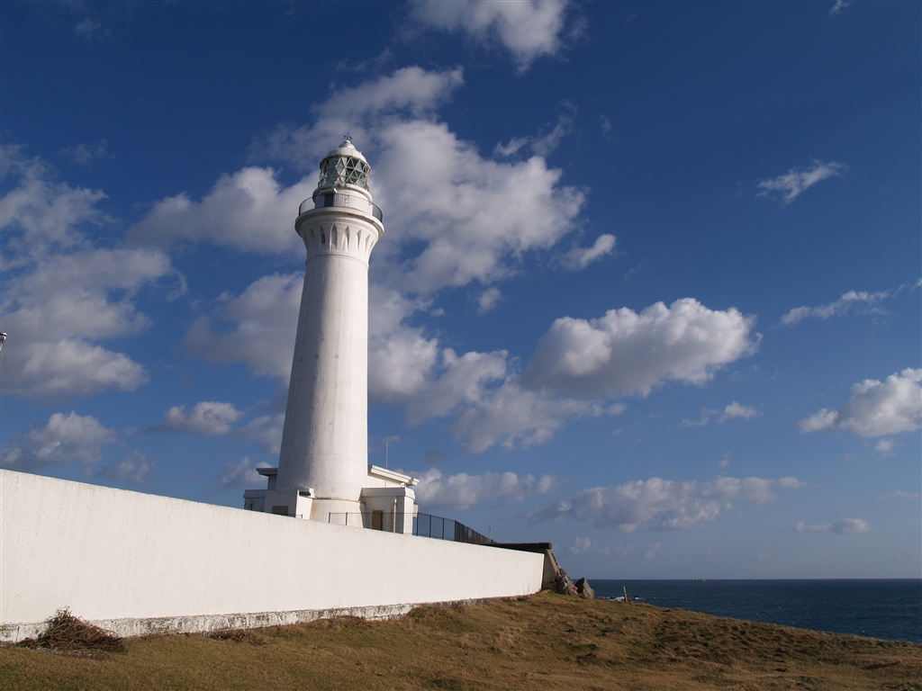 不自然な青空に灯台の傾き