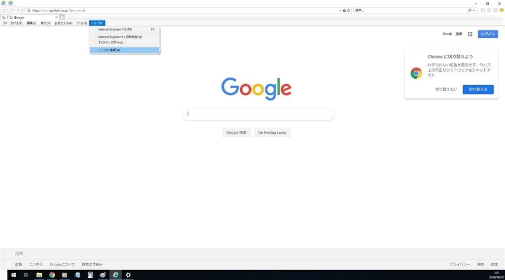 バージョン情報をクイック