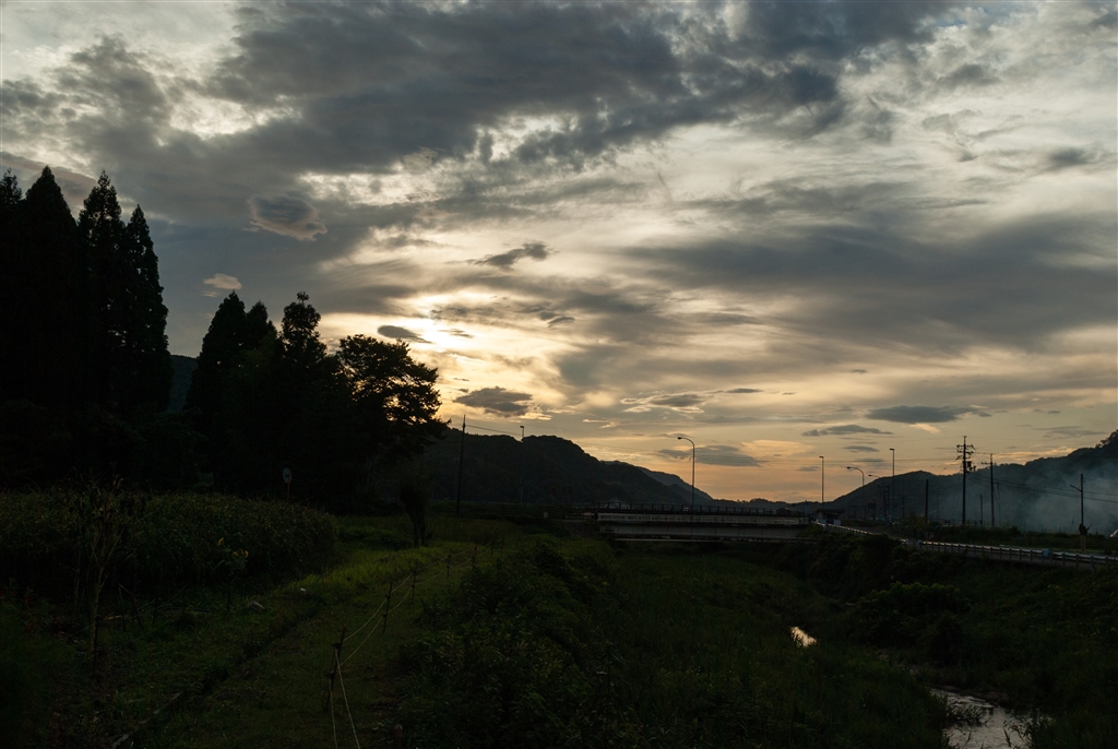 雲の多い夕焼け。