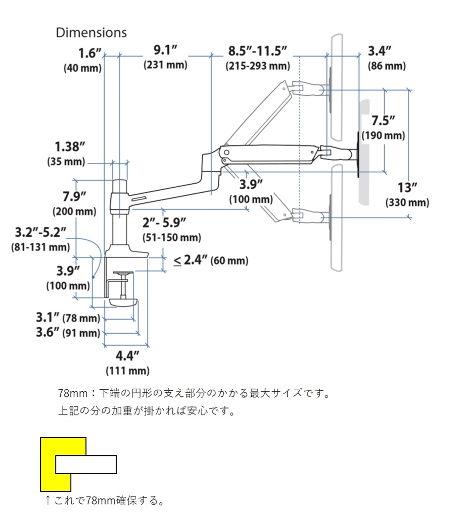 『奥行き延伸』 モニターアームすべて kockysさんのクチコミ掲示板画像1/1