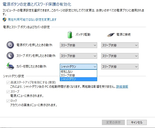 カバーを閉じた時の動作