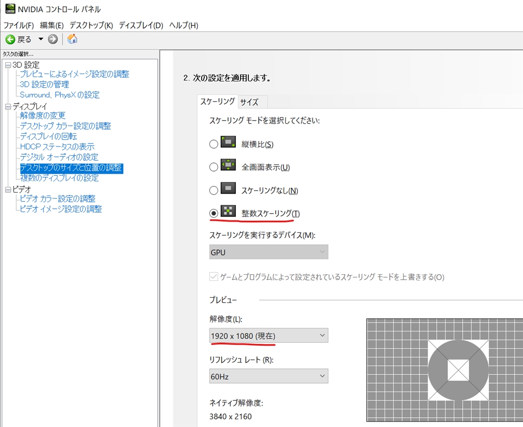 スケーリングモード変更方法