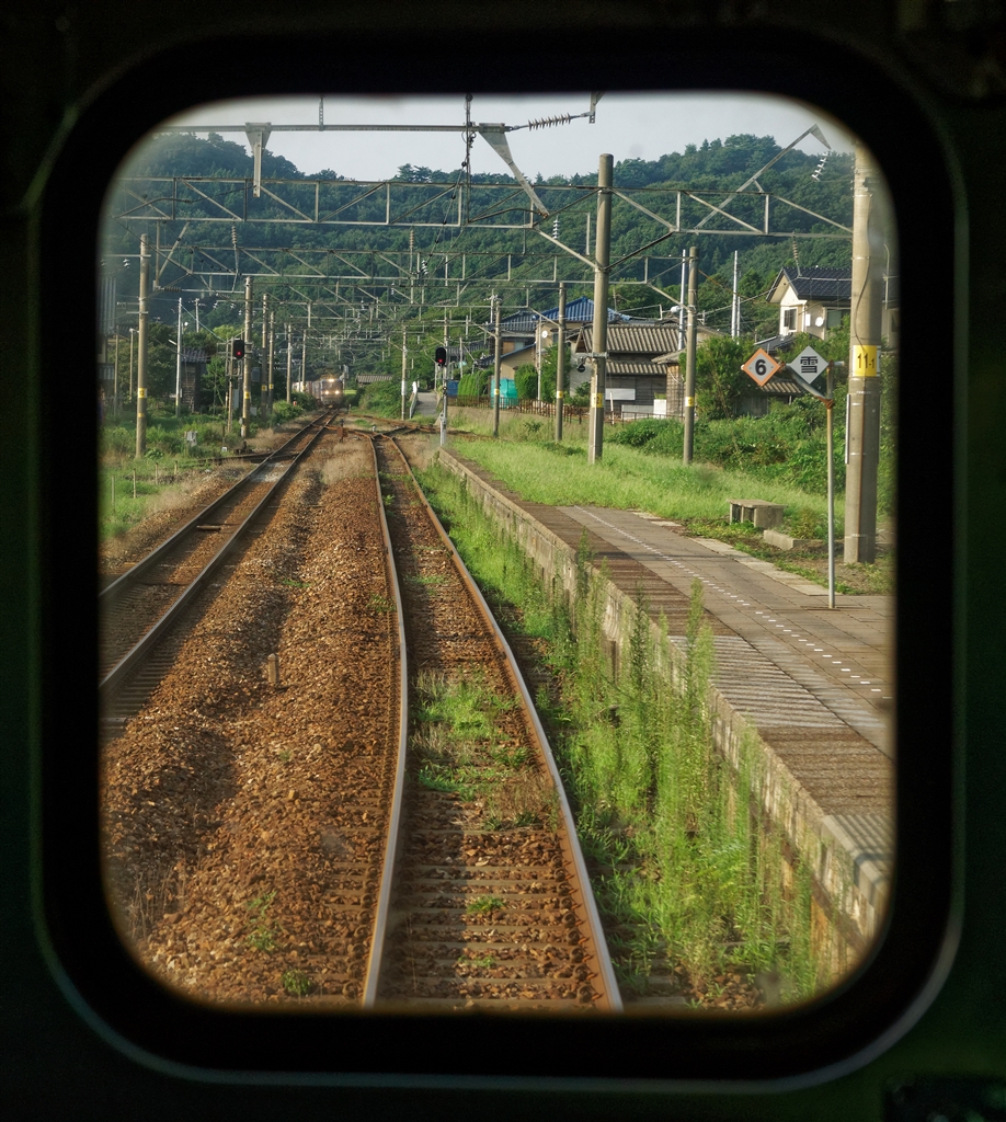 後方から貨物列車が、
